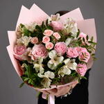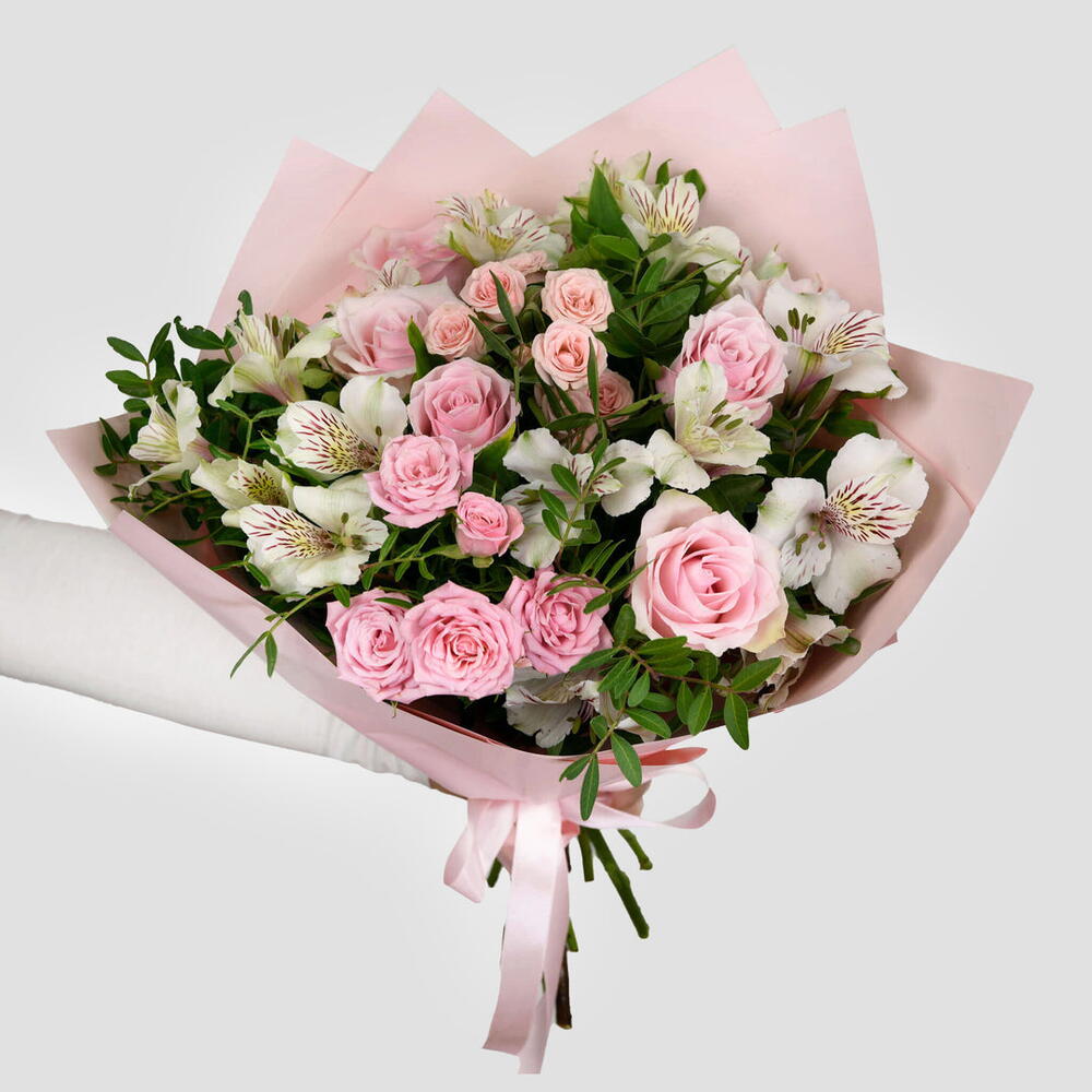 Alstroemeria - 4 шт. Pink rose - 4 шт. green trick - 4 шт. розовые спрей-розы - 4 шт.