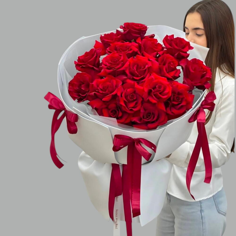 Преобразите любое событие в незабываемое воспоминание с этим роскошным букетом красных роз. Эта потрясающая композиция — настоящее свидетельство вечной красоты и искренних чувств, что делает её идеальным выбором для выражения любви, восхищения или благодарности