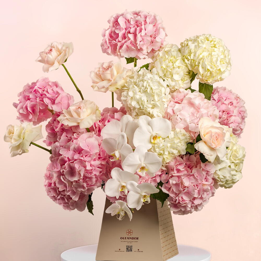 rose - 6 шт. hydrangea pink - 14 шт. hydrangea white - 6 шт. фаленопсис - 1 шт.