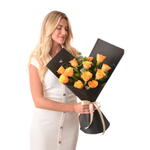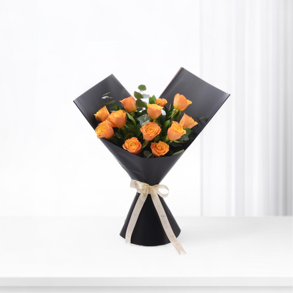 Преобразите ваши моменты с этим изысканным моно-букетом, художественно составленным из 12 завораживающих оранжевых роз. Яркие, пылкие оттенки роз прекрасно контрастируют с 12 успокаивающими зелёными веточками рускуса, символизирующими мир и спокойствие. В сопровождении 3 ароматных веточек эвкалипта этот букет — не только визуальное удовольствие, но и настоящее ароматическое наслаждение. Идеальный подарок или личное удовольствие для любого случая, этот букет непременно оживит любую комнату и создаст незабываемые воспоминания.