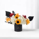 Ощутите яркое разнообразие, заключённое в этой изысканной композиции «Цветы в коробке», тщательно подобранной для выражения радости, страсти и любви. Сияющие подсолнухи игриво сочетаются с белоснежными гортензиями, создавая радостную атмосферу. Страстные красные розы и тёплые оранжевые розы переплетаются, пленяя ваши чувства, а белоснежные гвоздики возвышаются, символизируя обожание. Зелень дополняется продуманно вкрапленным эвкалиптом, придающим композиции глубину и текстуру. Это сочетание намеренно создано, чтобы воплощать сочетание тепла, пикантности и безмятежности. Идеально подходит для роскошного подарка, это живописное выражение привязанности и восхищения.