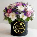 rose - 7 шт. chrysanthemums bacardi white - 3 шт. наполнители - 3 шт. шляпная коробка - 1 шт.