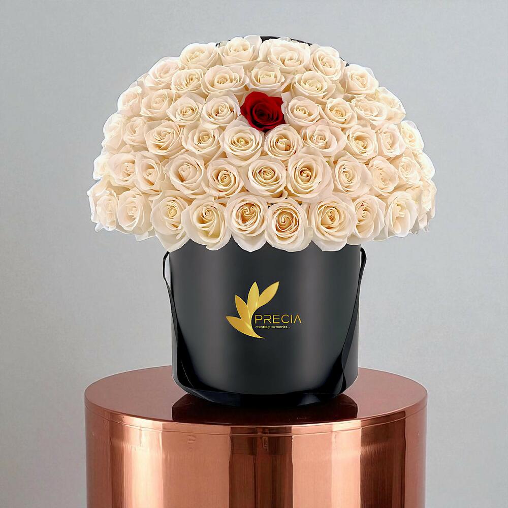 Red rose - 1 шт. White rose - 64 шт. floral foam - 4 шт. floral box - 1 шт.