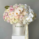 A delicate and airy arrangement in a box of the most beloved flowers in ivory and cream shades. The composition features long-lasting flowers with a gentle, unobtrusive fragrance. Includes orchid, ranunculus, eustoma, Peony Pink rose, hydrangea. The set comes with a personalized card, care instructions and flower fertilizer. *Flower delivery today Perfect for: - a gift for her; - weddings or anniversaries; - birthday; - perfect dates; - gift add-ons; - baby showers; - International Womens Day; - Valentines Day; - newborn gift; - gifts with no occasion; - VIP events or luxury floral surprise.