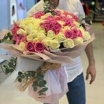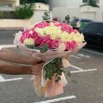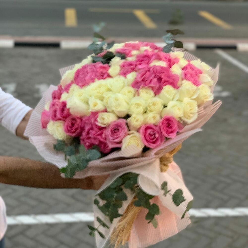 РОЗОВЫЕ И БЕЛЫЕ РОЗЫ 101 ШТ В БУКЕТЕ КРАСИВАЯ УПАКОВКА И ЛЕНТА