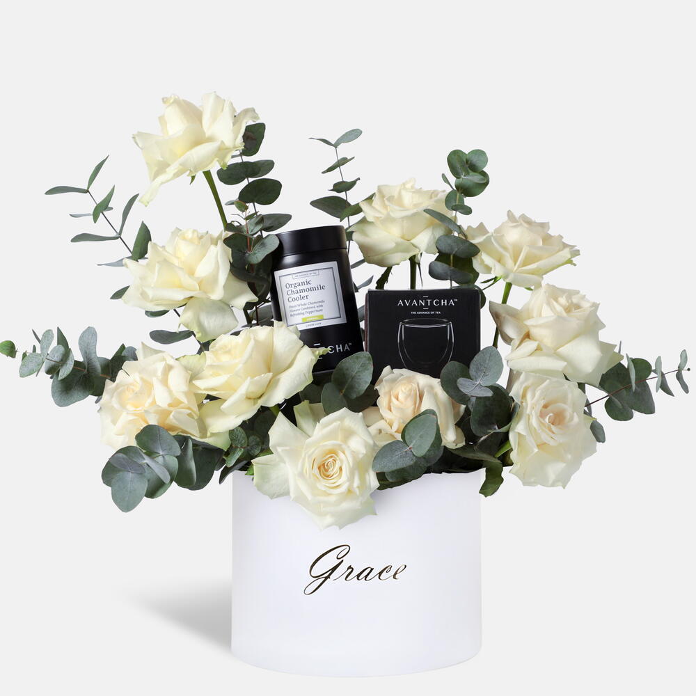 Eucalyptus - 2 шт. white roses - 10 шт. avantcha двустенный стакан - 150 шт. avantcha ромашковый чай - 40 гр.