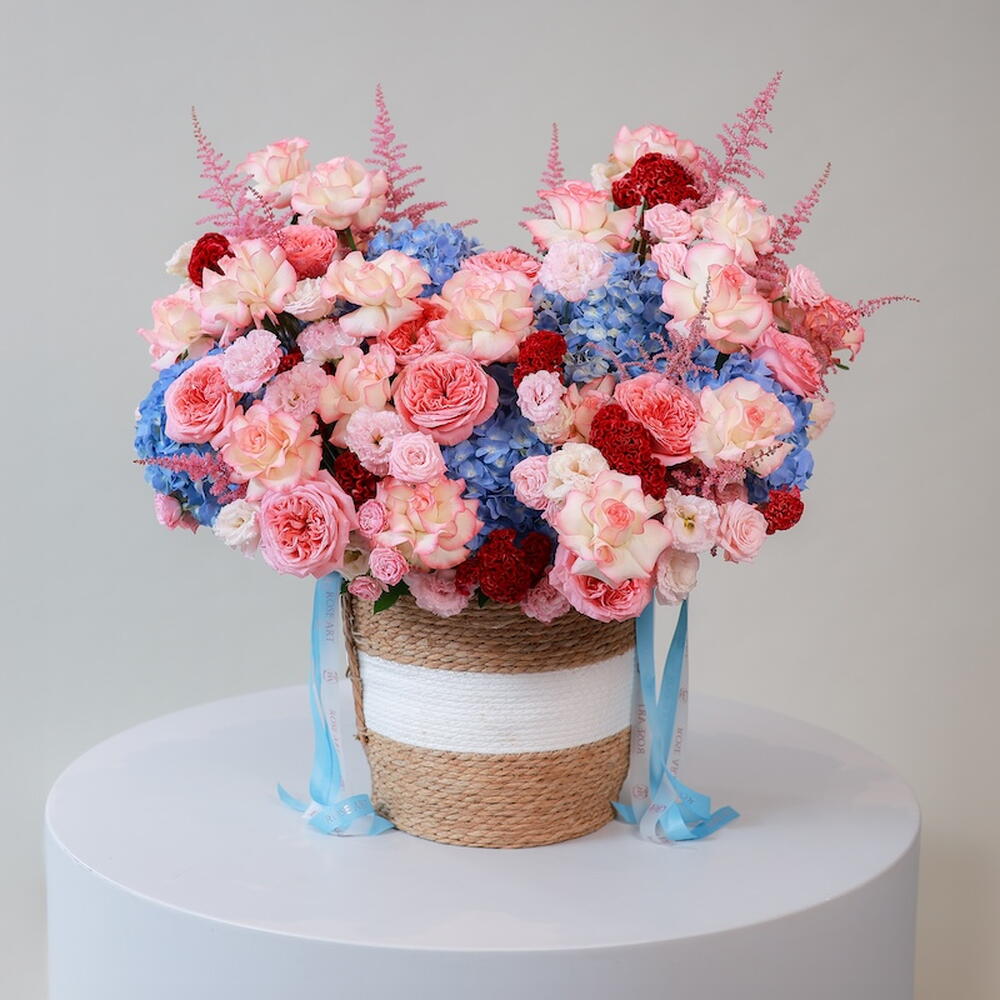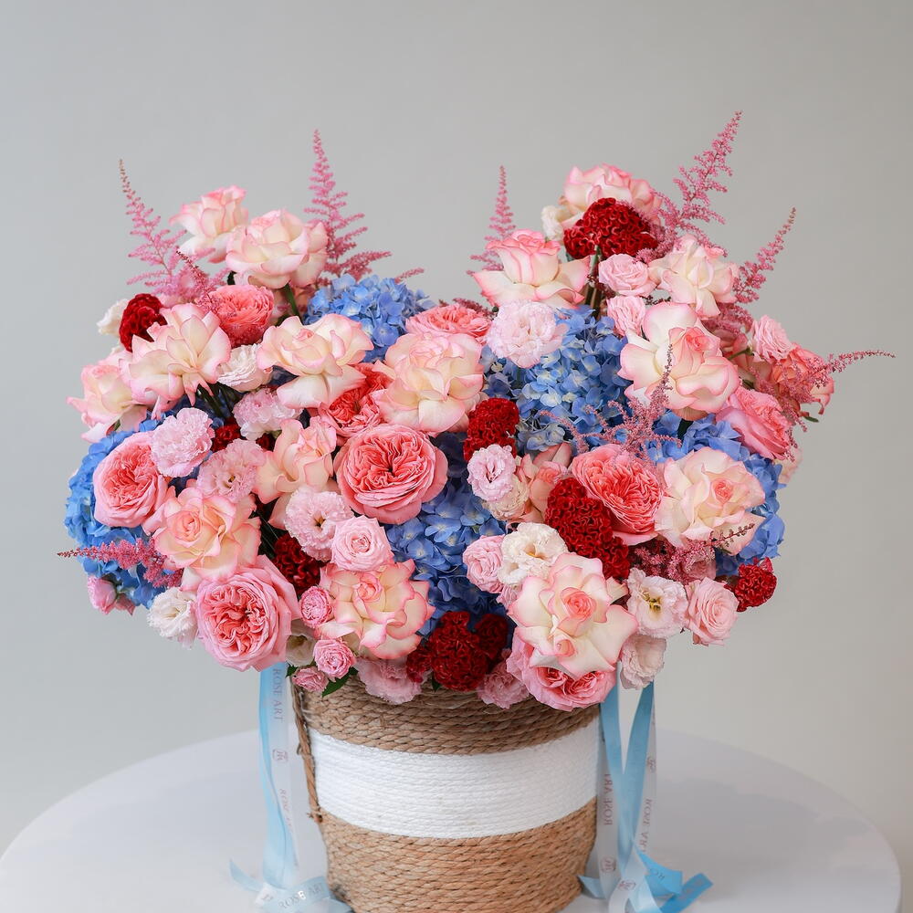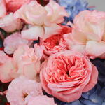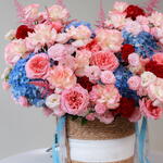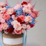 Eustoma - 20 шт. Hydrangea - 10 шт. celosia - 10 шт. astilbe - 10 шт. rose bombastic - 30 шт. роза джумилия - 45 шт. розовое выражение - 25 шт.