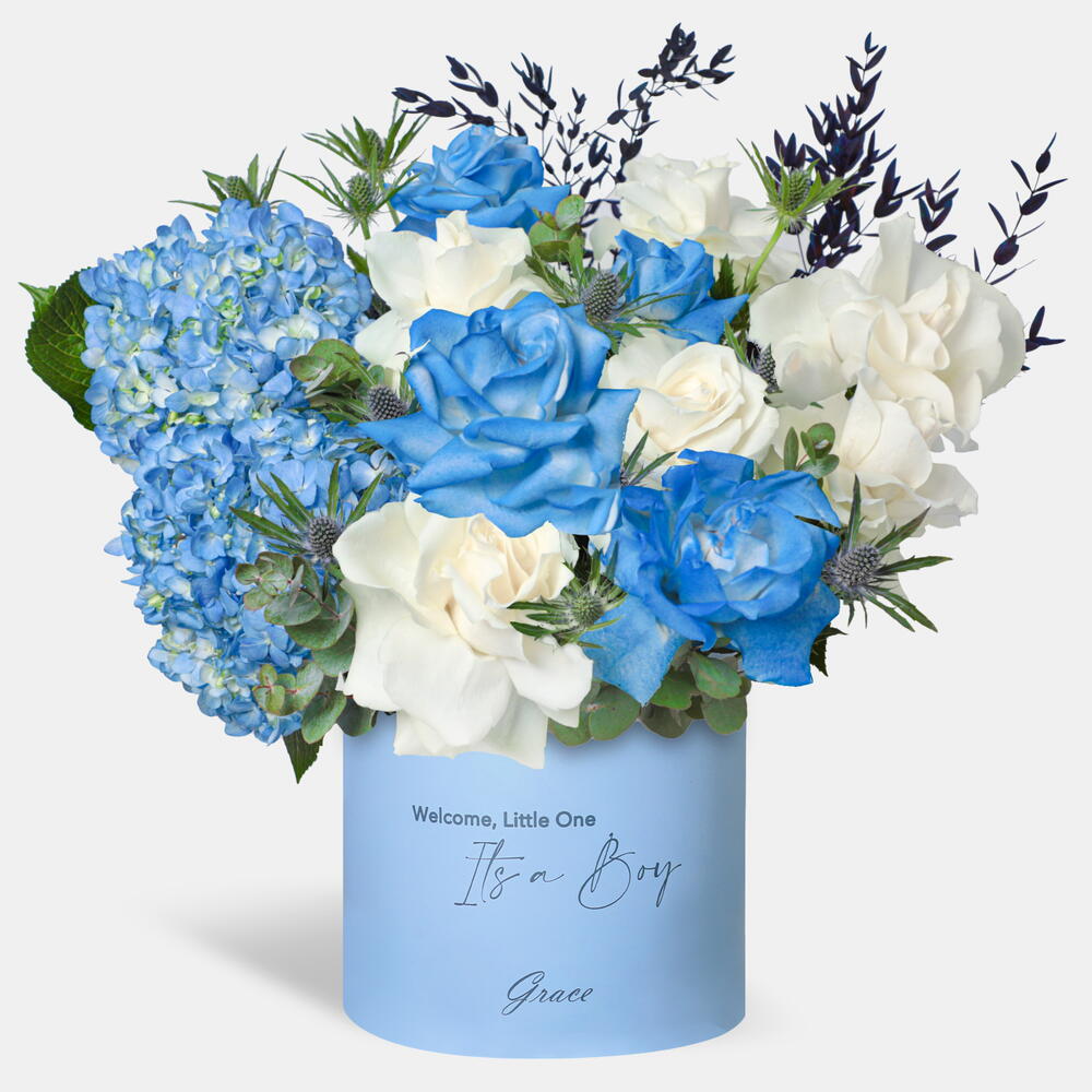 Изысканная смесь синих и белых цветов, символизирующая доверие, верность и умиротворение.