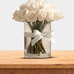 35 роскошных белых роз, расположенных симметрично и изящно. Величественный жест для свадьбы, значимого события или выражения искреннего уважения и восхищения.