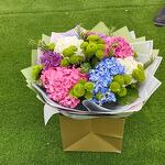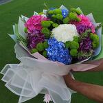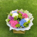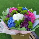 blue hydrangea - 2 шт. pink hydrangea - 2 шт. белые гортензии - 2 шт. микс-букет из гортензий - 1 шт. смесь зелени - 10 шт. микс гортензий - 2 шт.
