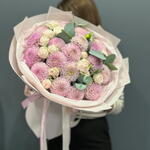 Eucalyptus - 10 шт. white spray rose - 20 шт. розовая далия - 20 шт.