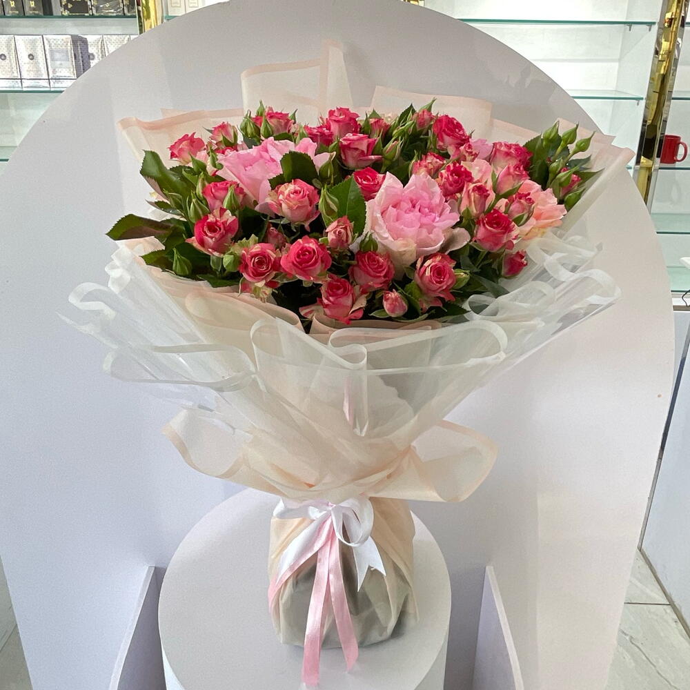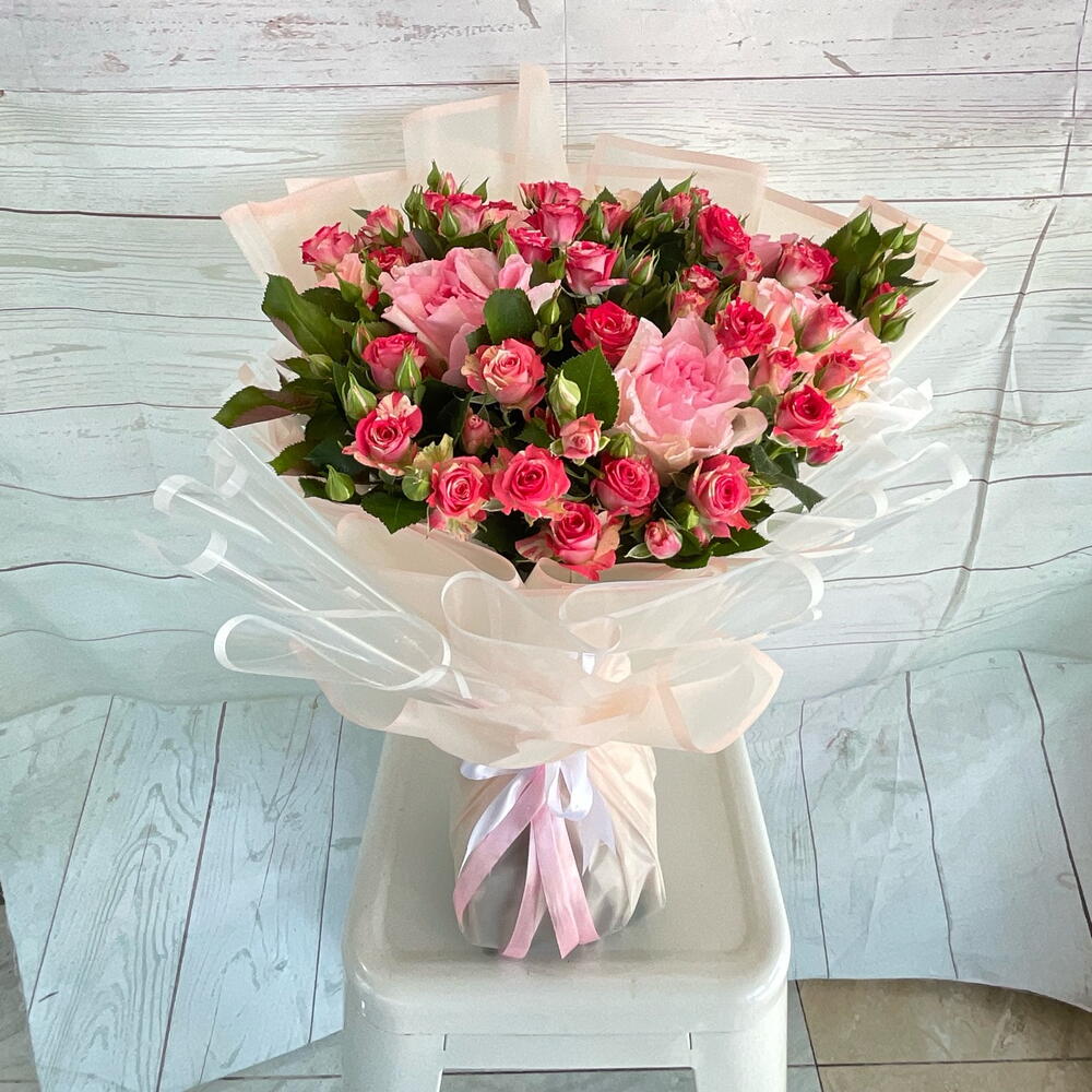 Ribbon - 2 шт. rose - 5 шт. wrapping paper - 5 шт. маленькая роза - 10 шт.