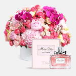 Преобразите ваш дом с изысканным цветочным боксом Bewilder, теперь идеально сочетающимся с элегантными духами Miss Dior Eau de Parfum. Это роскошное сочетание приносит в любую комнату яркие цвета, пышные фактуры и утончённый аромат, делая его идеальным центром внимания для любого случая.