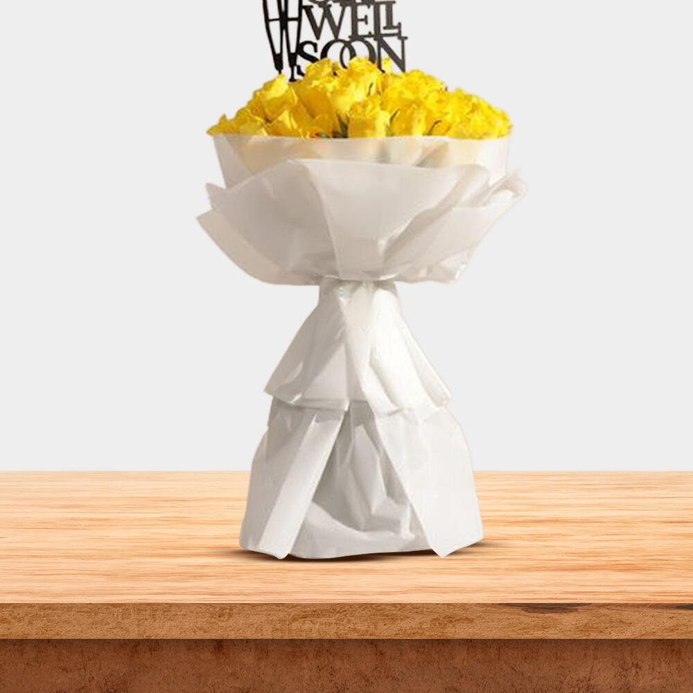 Продуманная композиция из цветов, выражающая ваши теплые пожелания скорейшего выздоровления и новой радости кому-то…