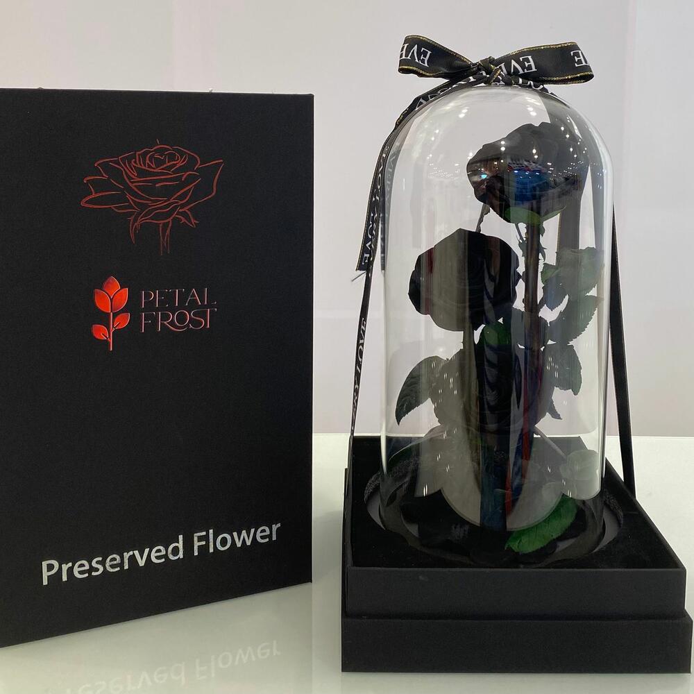 Смелый, элегантный и неподвластный времени — наш «Вечный таинственный купол» украшен тремя настоящими стабилизированными чёрными розами, заключёнными в высококачественный стеклянный купол. Эти розы символизируют силу, мощь и вечную любовь, сохраняя красоту до двух лет без какого-либо ухода. Идеальный роскошный подарок для ценителя уникальности и изысканности. Подходит для: чёрных стабилизированных роз, вечных роз, подарка под стеклянным куполом, роскошных стабилизированных цветов, вечных роз, роз с длительным сроком хранения.