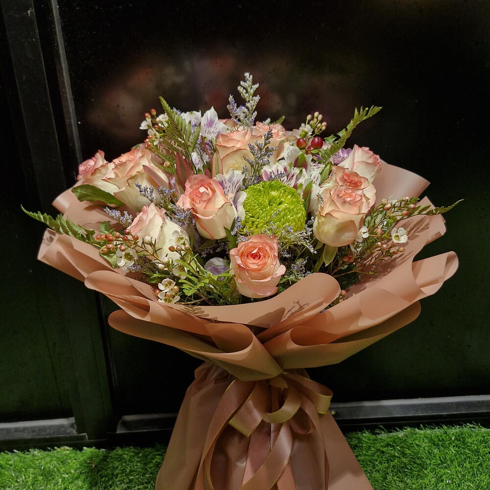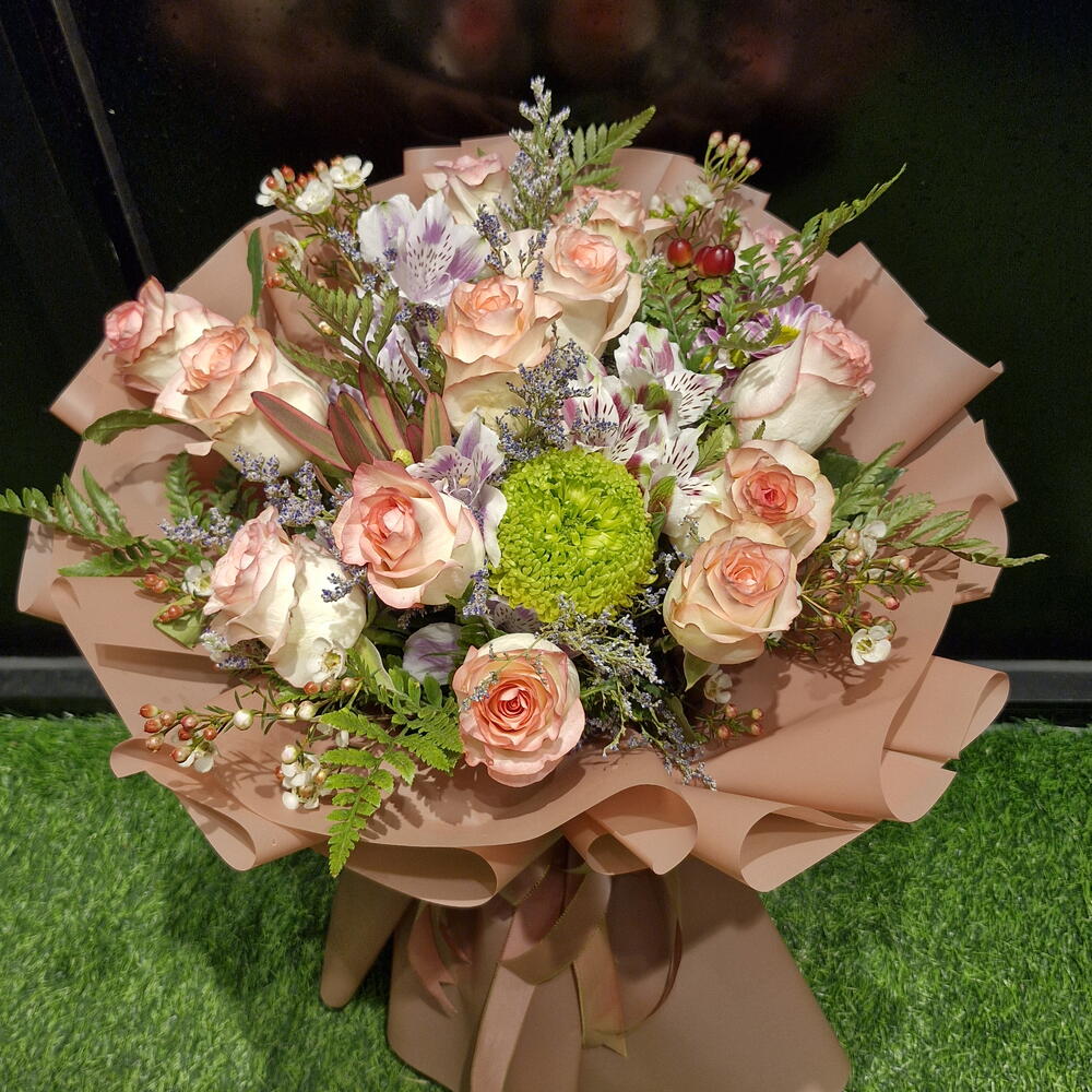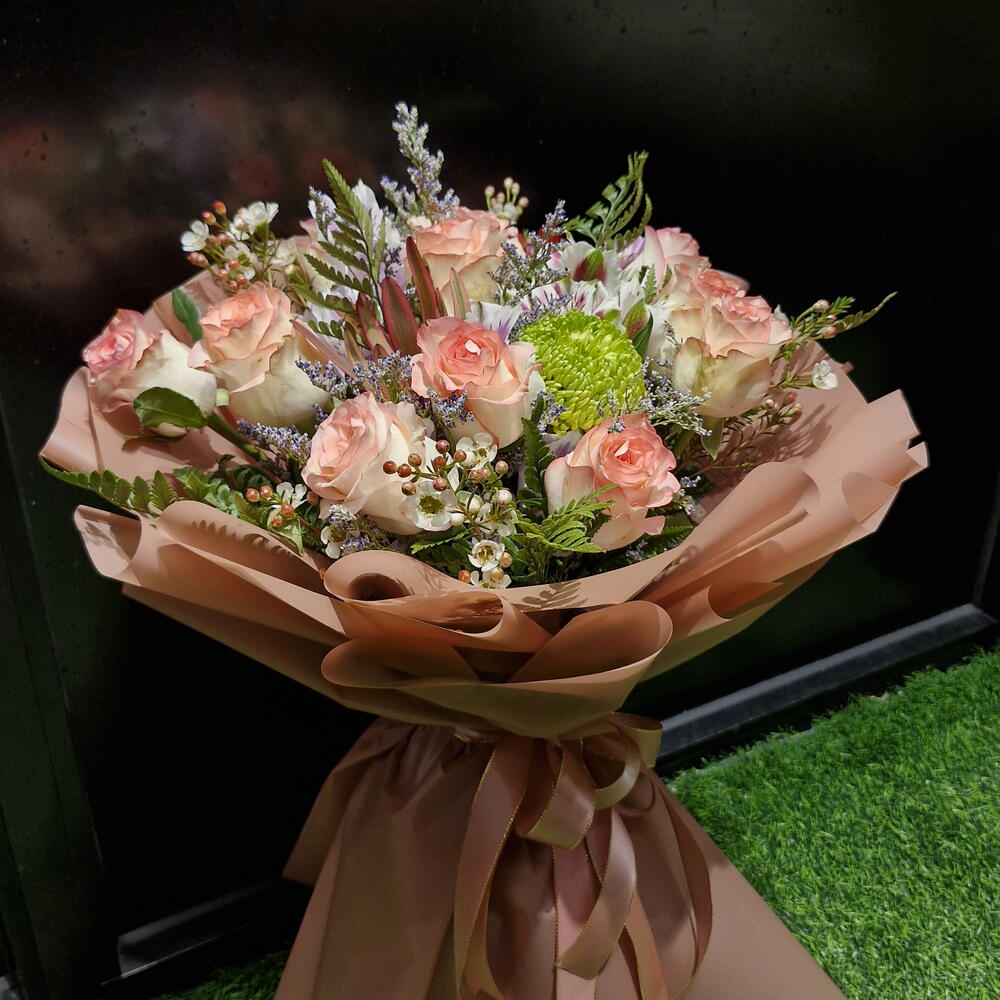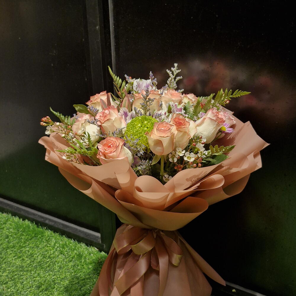 It was supposed to arrive at 3-3:30 but it was delayed until 5. I asked them to make it look fuller but they didn’t. Doesn’t look very similar to the photo