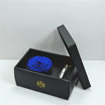 Синяя вечная роза в фирменной коробке с бутылочкой для послания