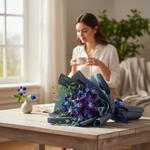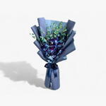 Букет из 10 стеблей синих орхидей, дополненный свежими наполнителями и элегантно упакованный. Это экзотическая и эффектная композиция придаёт нотку элегантности и уникальности, идеально подходит для того, чтобы сделать смелое и красивое заявление.