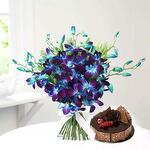 синие орхидеи - 10 шт. фадж-торт - 1 шт.