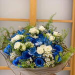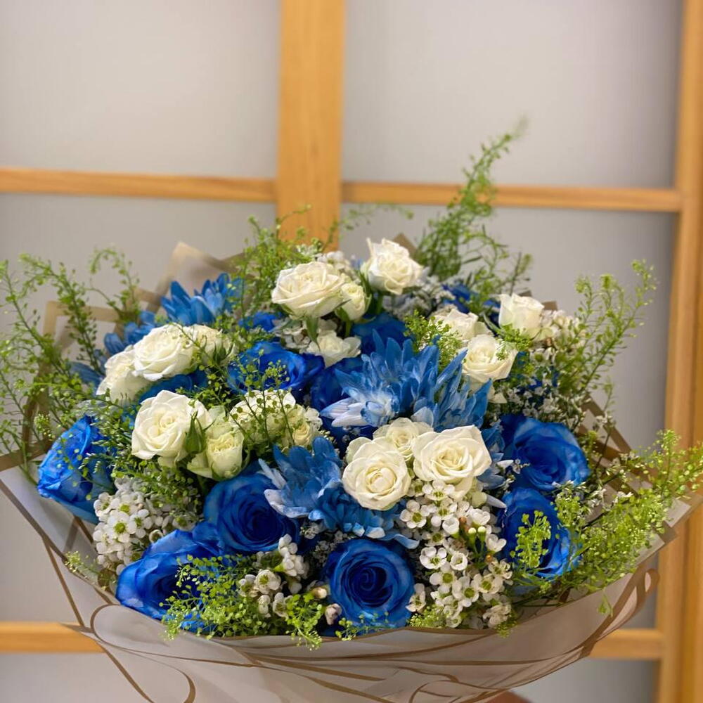 синяя роза 7 синяя хризантема 3 вакс 3 спрей розы 3 аксессуары в букете 275 aed..