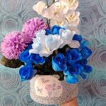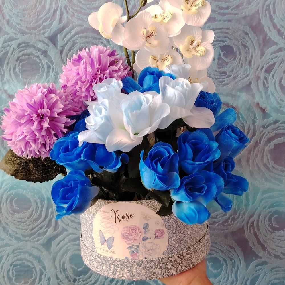 Голубо-белая коробка искусственных цветов