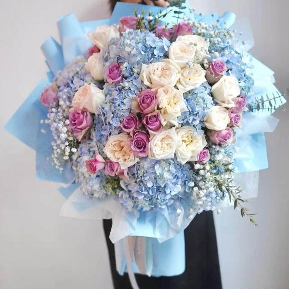 Bluebird's DreamBlue Гортензия и роза Delight Роскошный букет