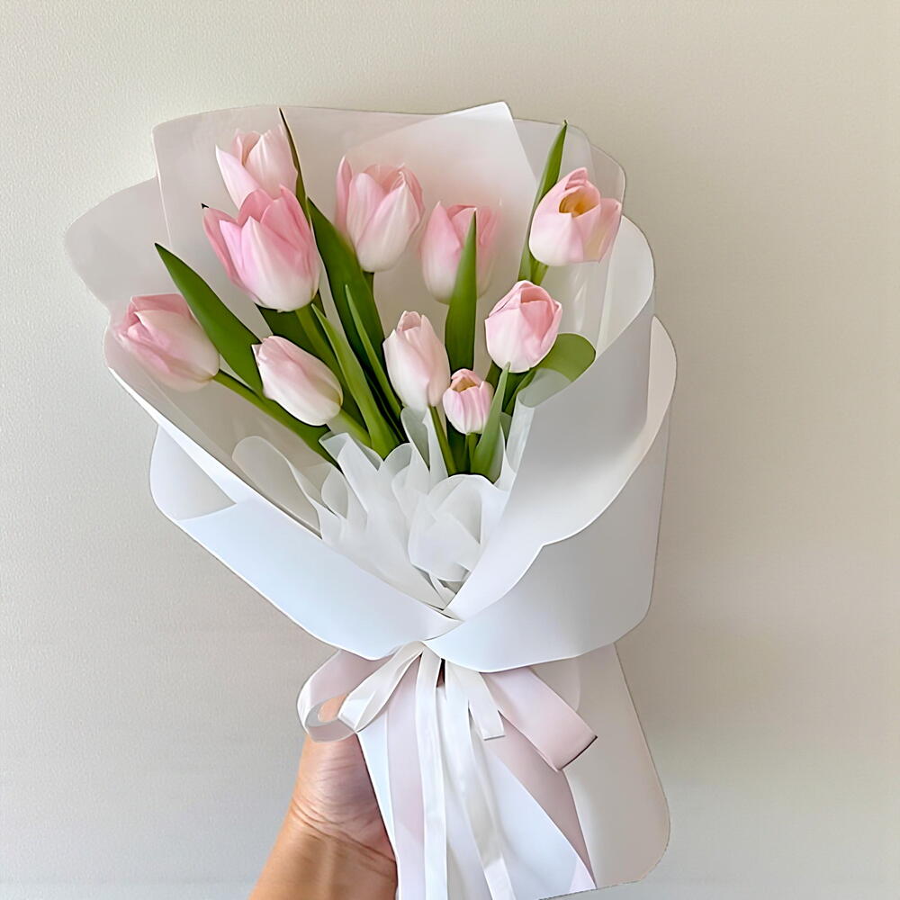 Свежее выражение тепла и новых начинаний. 11 нежных розовых тюльпанов, собранных в элегантный букет — идеально подходит для дней рождения, весенних праздников и заботливых сюрпризов. Доставляется свежим по всему Дубаю.