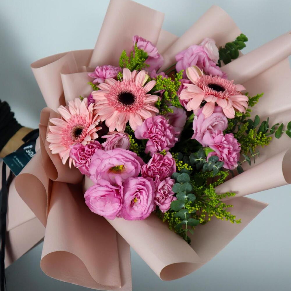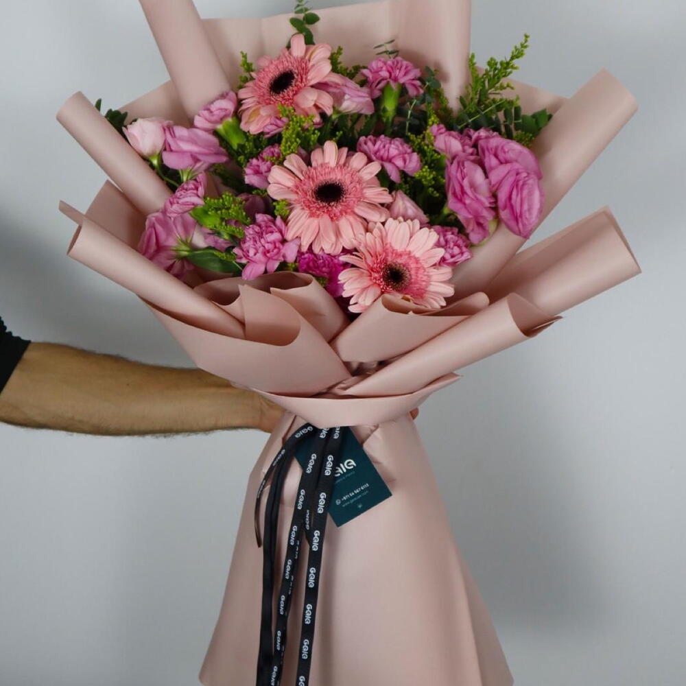 Элегантные розовые герберы: Свежие, яркие розовые герберы, символизирующие любовь, красоту и чистоту. Идеальная упаковка: Стильно упакованы в бледно-розовую бумагу, придающую им утончённый и современный вид Универсальный подарок: Идеально подходит для дней рождения, юбилеев, выражения признательности, поздравлений и особых случаев, а также в качестве очаровательного украшения любого пространства.