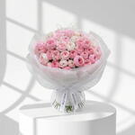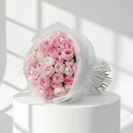 A soft and romantic bouquet in delicate pink and white shades, arranged entirely with charming spray roses. Airy, elegant, and feminine, this bouquet is a lovely choice for birthdays, Mother’s Day, Valentine’s Day, and sweet thoughtful gifting. • Please Note: As flowers are natural products, actual colors may vary slightly from digital images due to seasonal growth and lighting conditions. We guarantee that the overall style and premium quality as well as freshness of your arrangement will always be maintained.