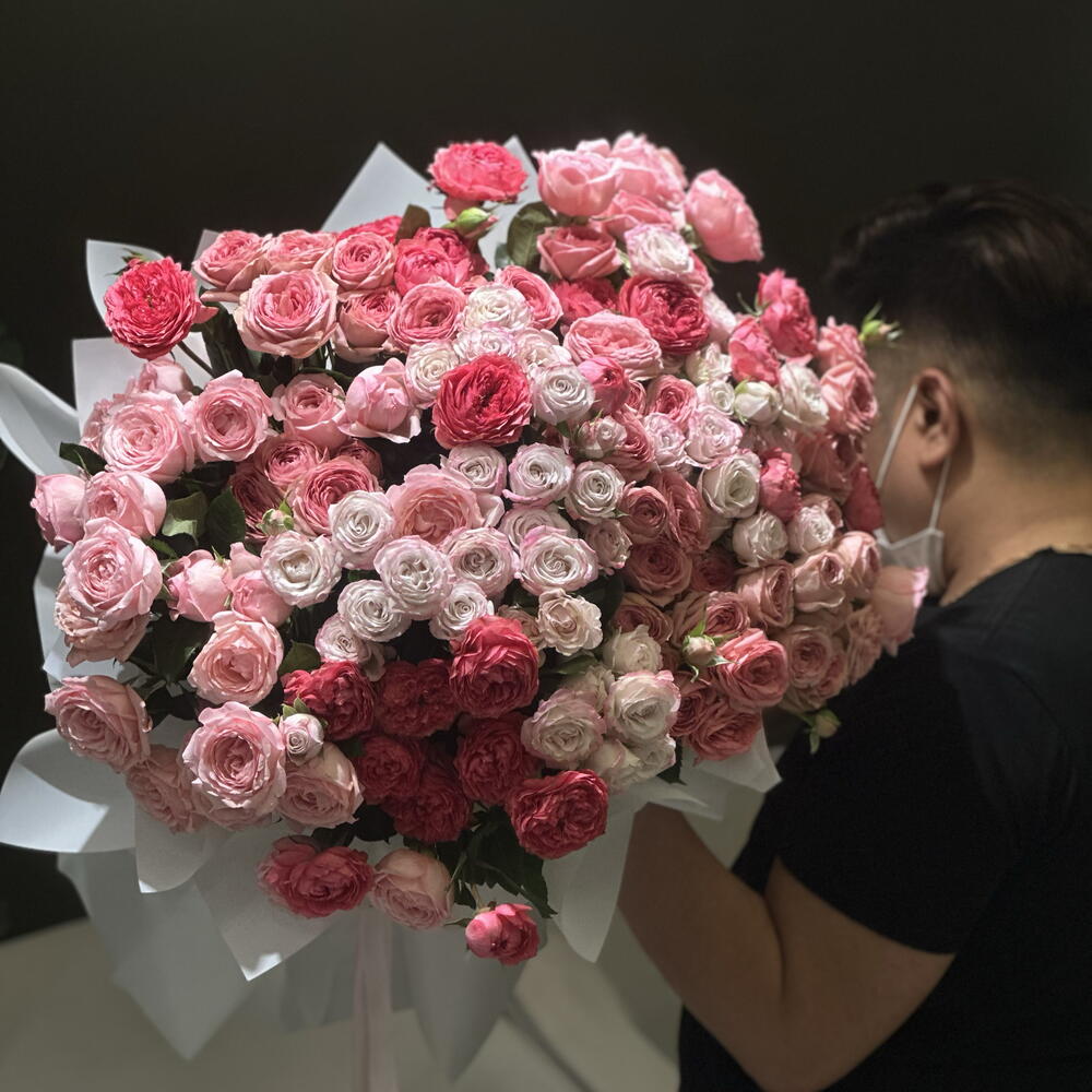 Потрясающая композиция из премиальных роз нежно-розового и румяного оттенков, искусно оформленная, чтобы создать мягкое и романтичное впечатление. Роскошный букет «Blush Garden» сочетает в себе восхитительную смесь нежных светло-розовых, румяных и насыщенно-розовых цветков, вручную завернутых в элегантную белую бумагу и украшенных изящной лентой. Идеально подходит для дней рождения, юбилеев, романтических сюрпризов или любого момента, который заслуживает по-настоящему особенного подарка. Этот великолепный букет объединяет элегантность, очарование и искренние эмоции в одном незабываемом подарке.