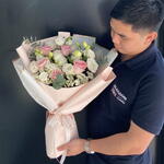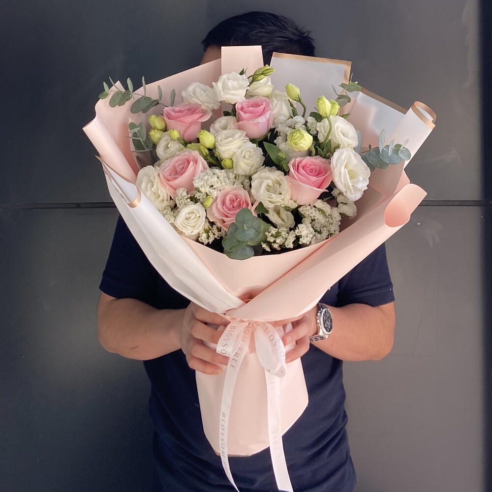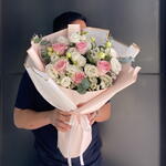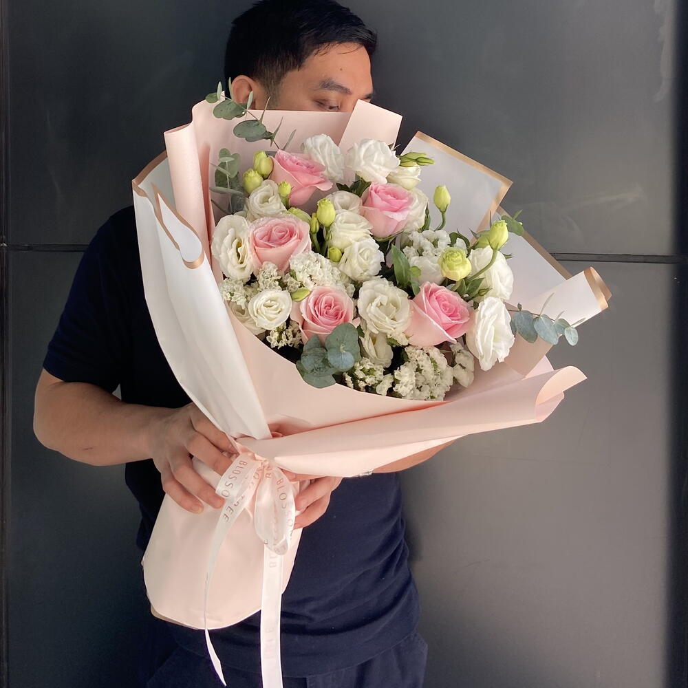 Statice - 3 шт. Eucalyptus - 3 шт. Pink rose - 5 шт. Lisianthus - 5 шт.