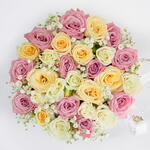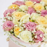 Коробка бледно-розовых и кремовых роз
