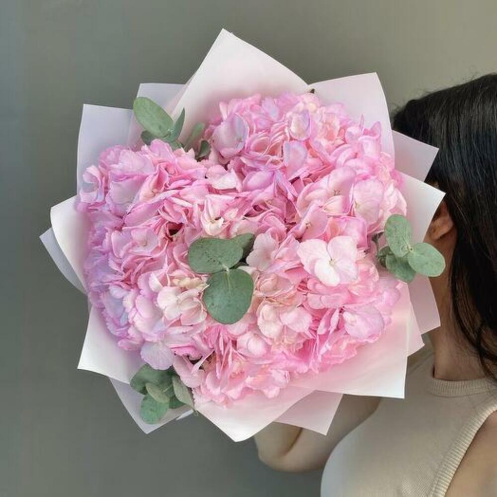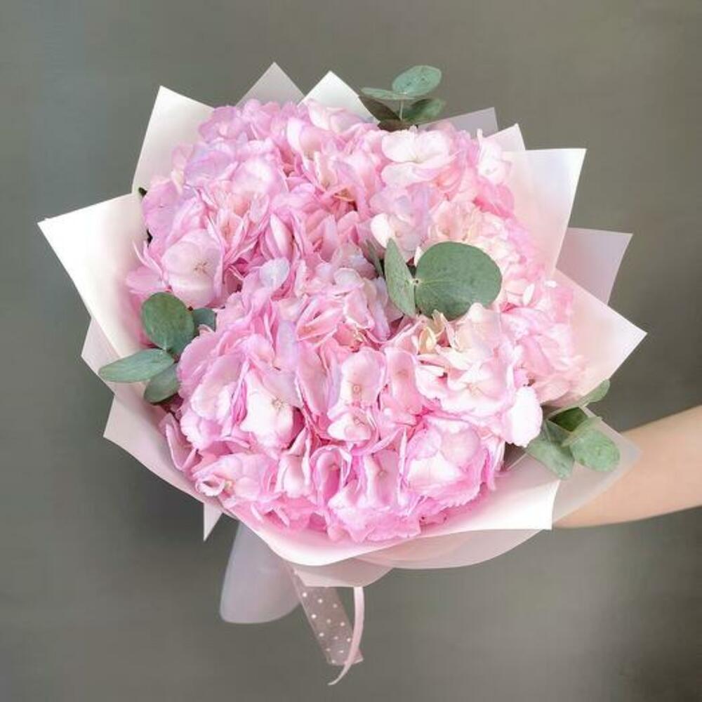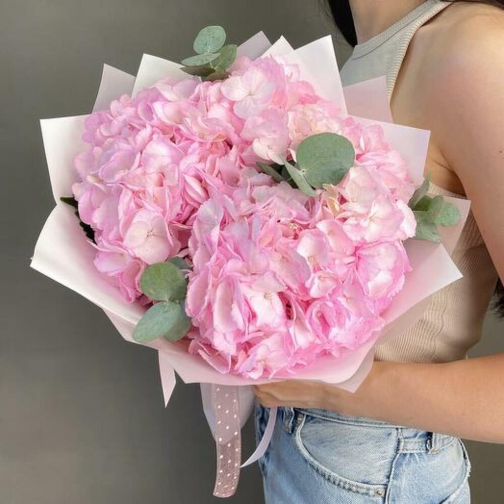 Румяная безмятежность: букет розовых гортензий