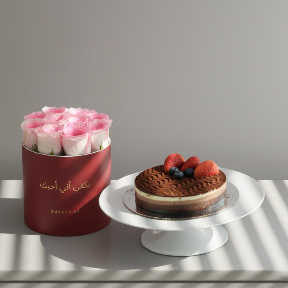 Нежный, романтичный и неотразимо роскошный, Blushed by Morning Love Box Cake Combo сочетает 10–13 премиальных розовых роз, расположенных в мягкой округлой композиции, с полкилограммовым тортом «Тройной шоколад». Подаётся в средней круглой коробке ZUVEES с надписью только на арабском «In My Heart… Always», эта валентиновская композиция объединяет цветочную нежность с насыщенной сладостью — интимное выражение любви, которое стоит смаковать и запомнить.