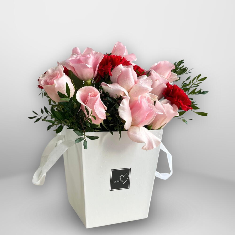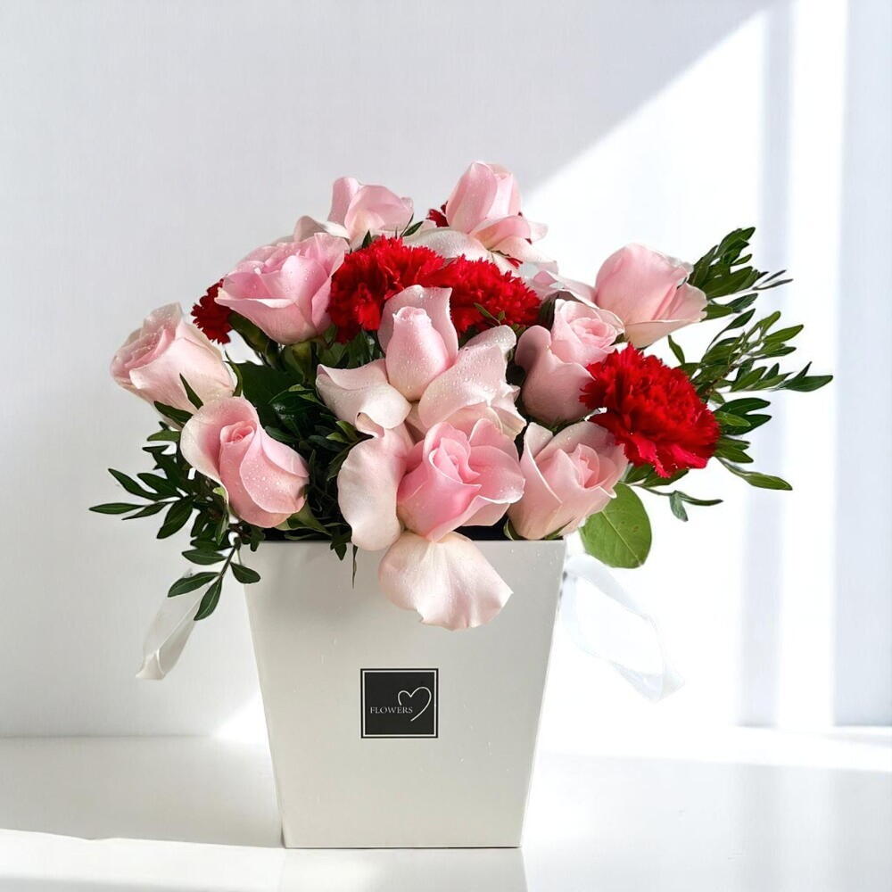 Нежное выражение любви и изящества. Композиция Blushing Blooms объединяет нежные розовые гвоздики и розы, искусно оформленные в современной роскошной коробке. Женственная, элегантная и вневременная — эта композиция говорит то, что не поддается словам. Идеально подходит для дней рождения, годовщин, Дня святого Валентина или моментов, заслуживающих нежности и внимания. Создано для подарка. Оформлено так, чтобы запомниться. Роскошная цветочная коробка ручной работы Премиум розовые гвоздики и розы Нежная, романтическая цветовая палитра Идеально подходит для дней рождения, годовщин, Дня святого Валентина Элегантное оформление, готово к дарению Длительная свежесть благодаря профессиональной композиции