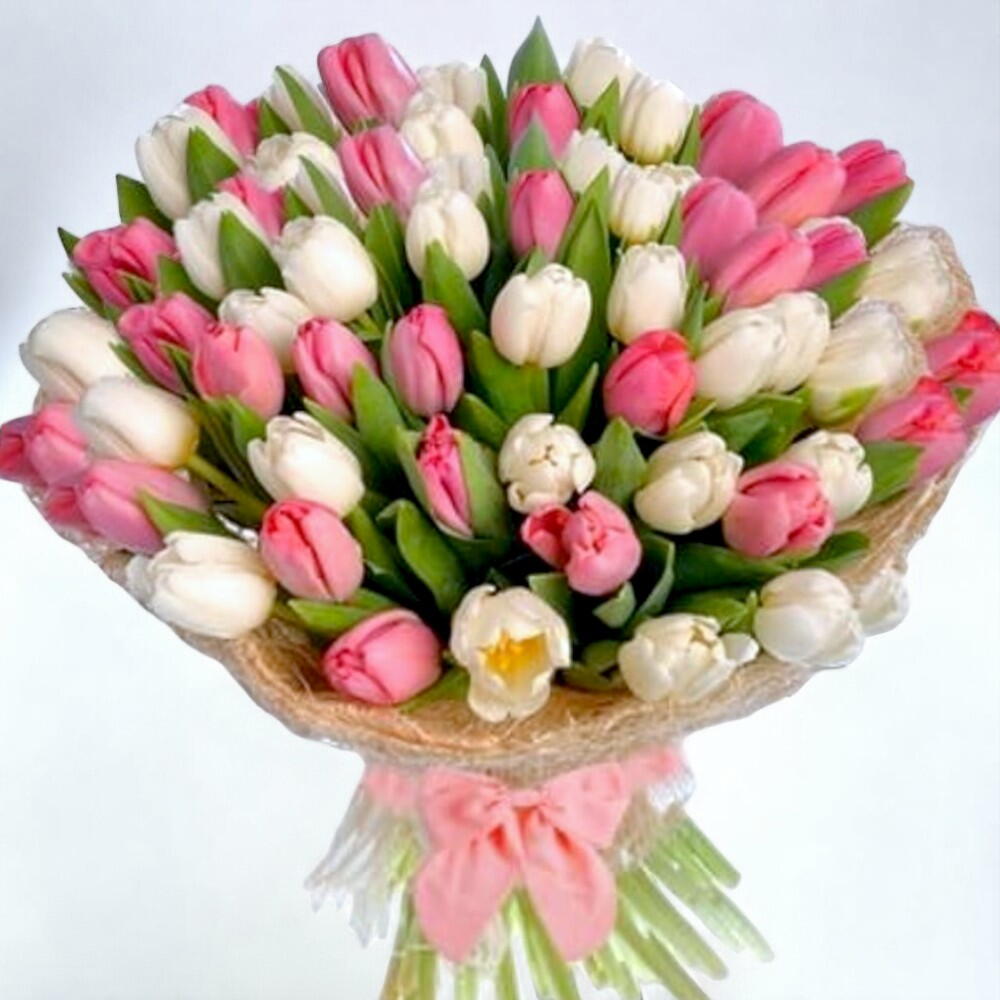 pink tulips - 25 шт. white tulips - 26 шт.