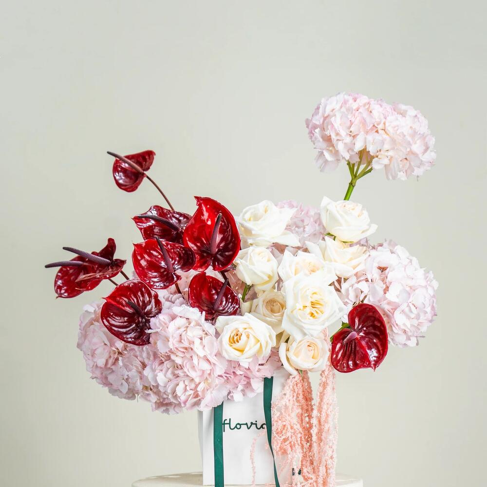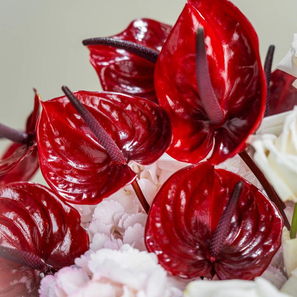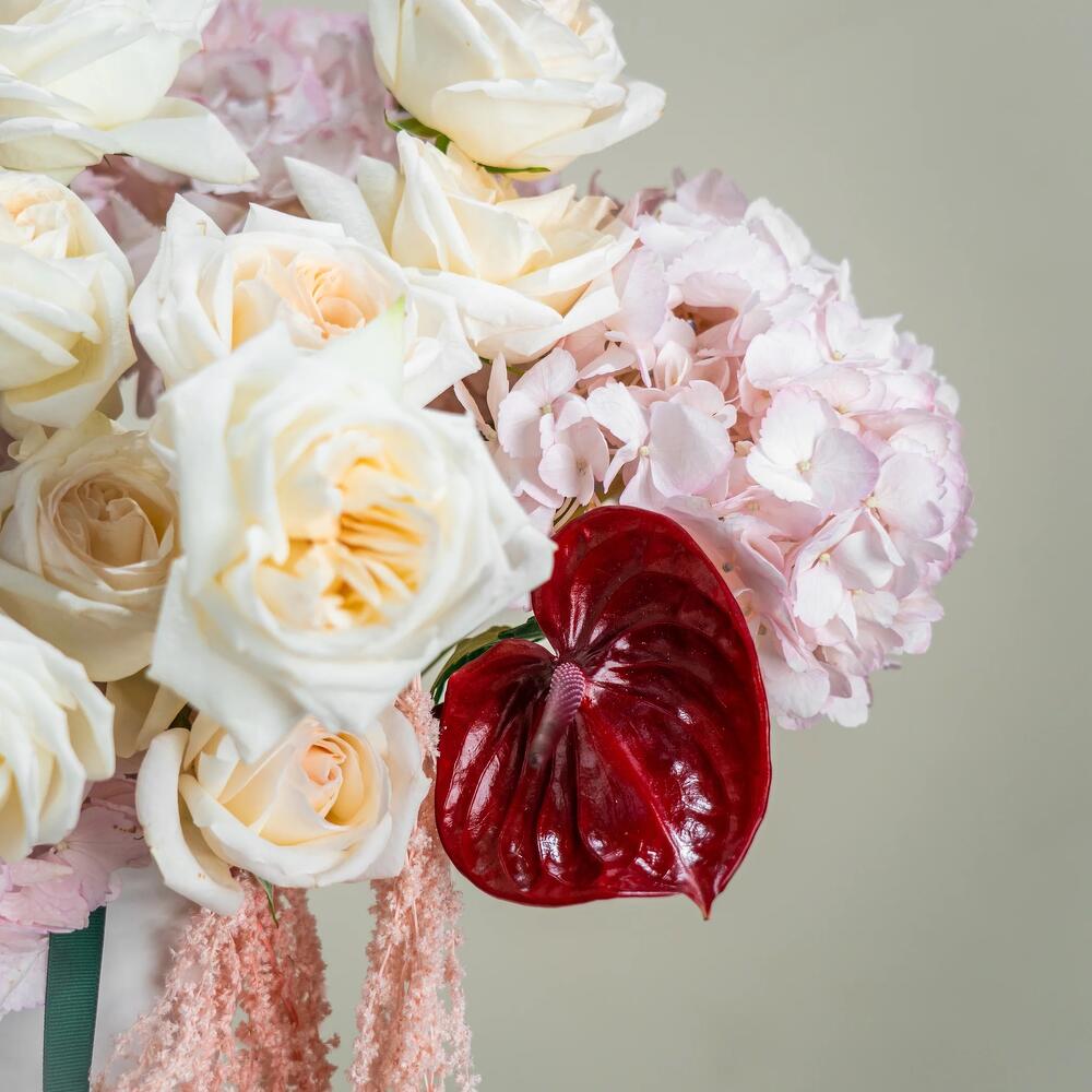 pink hydrangea - 7 шт. anthurium red - 9 шт. ohara rose - 10 шт.