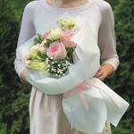 Composition: Rose Pink Ohara - 3, Lisianthus - 2, Gypsophila - 1, Rose spray Bombastic - 3, Pittosporum - 1, wraping - 1, ribbon - 1 Sizes: WIDTH - 25CM; HEIGHT - 50CM; LENGTH - 50CM; (including packaging) Размер: 25 x 50 x 50 см