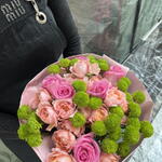 Pink rose - 7 шт. chrysanthemum santini - 7 шт. spray rose julieta peach - 7 шт.