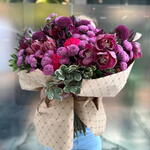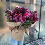 Composition: Dianthus - 6, Chrysanthemum Momoko - 10, Protea - 3, Chrysanthemum Santini - 20, Cymbidium - 11, Leucadendron - 10, Pittosporum - 7, Chamelacium - 10, Alstroemeria - 8 Sizes: WIDTH - 55CM; HEIGHT - 55CM; LENGTH - 55CM; (including packaging) Размер: 55 x 55 x 55 см