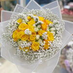 Добавьте яркости любому случаю с букетом жёлтых роз «Солнечный свет» – яркой композицией из 21 яркой жёлтой розы, дополненной свежими эвкалиптовыми акцентами. Этот букет излучает позитив и тепло, что делает его идеальным подарком на день рождения, в знак благодарности, поздравлениями или просто для поднятия настроения. Его потрясающий золотистый оттенок воплощает суть счастья и надежды. Инструкция по уходу: После получения букета поместите его в чистую воду и подрежьте стебли по диагонали, чтобы они лучше впитывали воду. Храните цветы в прохладном месте, вдали от прямых солнечных лучей, тепла и сквозняков. Меняйте воду каждые два дня и удаляйте все листья и лепестки, которые начинают увядать. Правильный уход поможет дольше сохранить яркий цвет и свежесть роз.