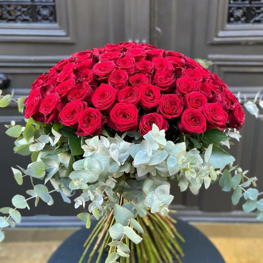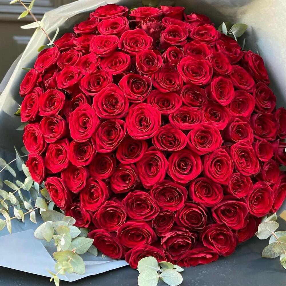 Satin ribbon - 2 шт. Eucalyptus - 20 шт. Box - 1 шт. card - 1 шт. good feelings - 100 шт. krizal - 1 шт. instruction - 1 шт. red roses - 101 шт.