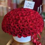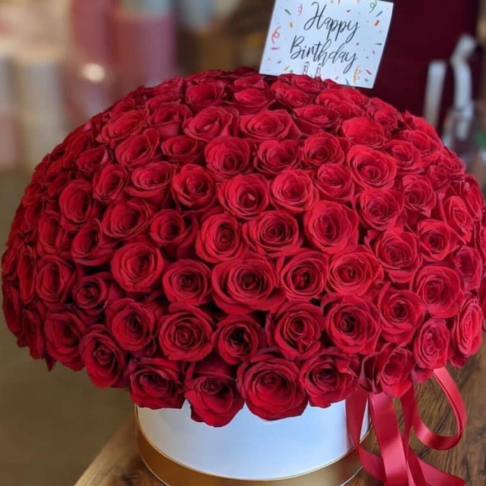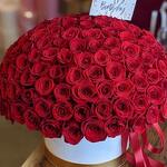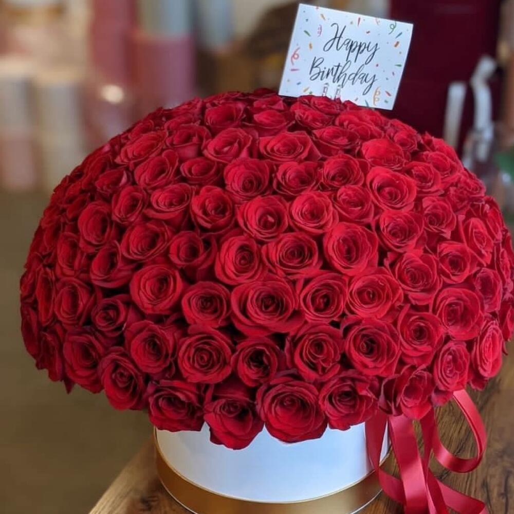 Bouquet of 101 red roses in hat box
