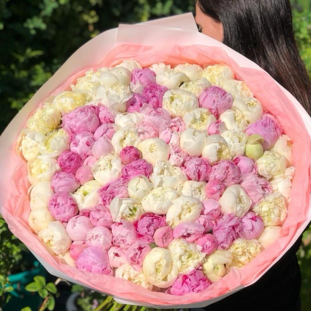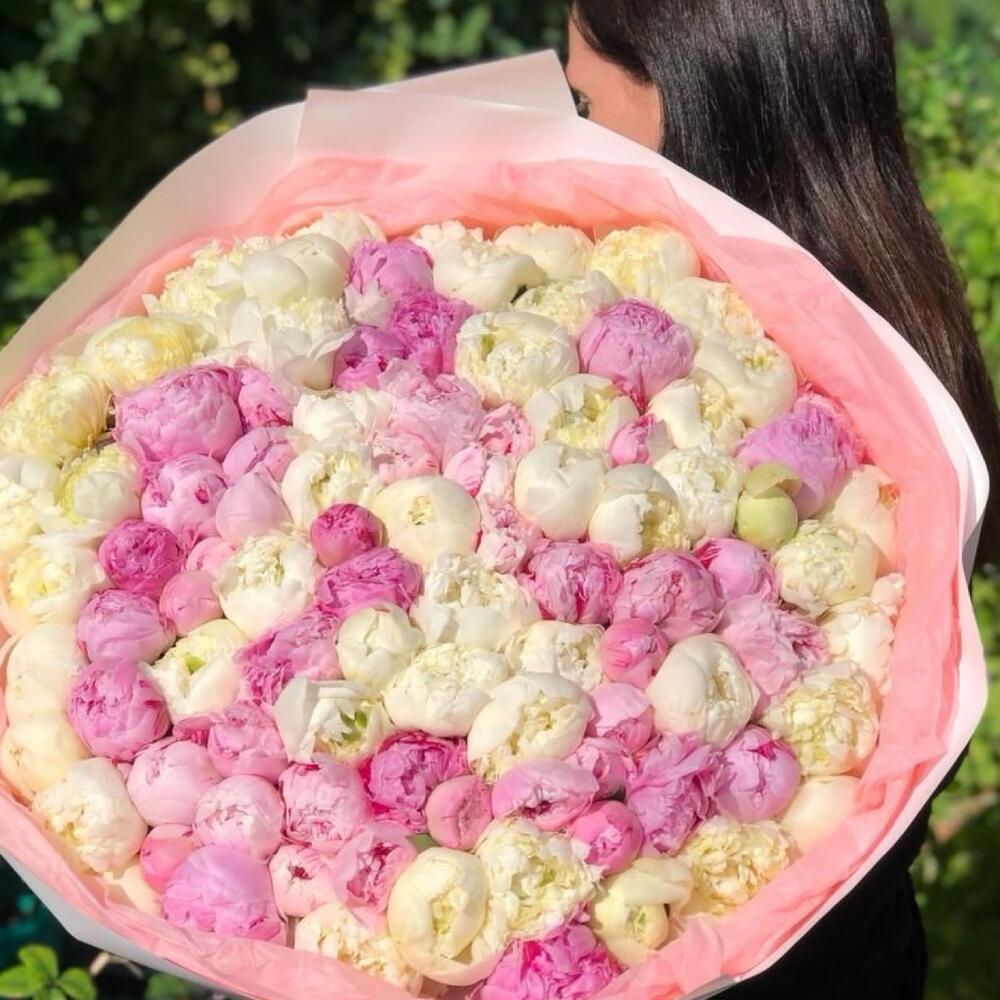 Bouquet of 101 white and pink peonies