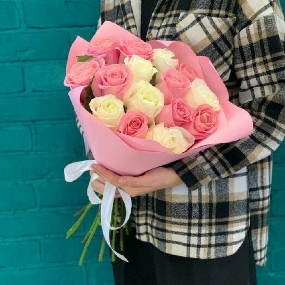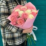 Отпразднуйте любовь и красоту с нашим букетом из 15 очаровательных розовых и белых роз. Эта пленительная композиция воплощает романтику и элегантность, что делает ее идеальным подарком для любого особого случая. Нежные розовые розы символизируют восхищение и благодарность, а белоснежные – чистоту и новые начинания. Вместе они создают потрясающую картину, трогающую сердце. Идеально подходит для годовщин, дней рождения или в качестве искреннего жеста!
