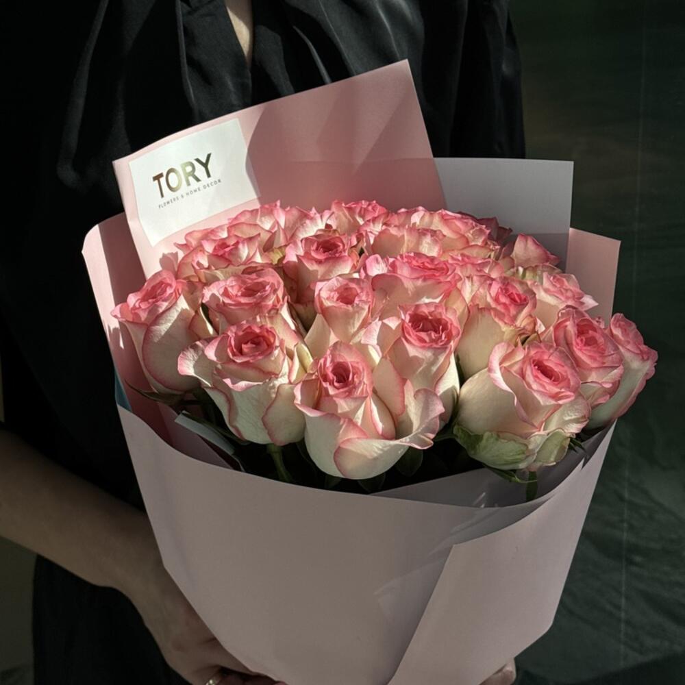 Composition: Jumilia rose - 25, wrapping - 1, ribbon - 1 Sizes: WIDTH - 35CM; HEIGHT - 60CM; LENGTH - 60CM; (including packaging) Размер: 35 x 60 x 60 см