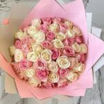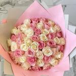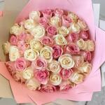 Bouquet of 51 white and pink roses
