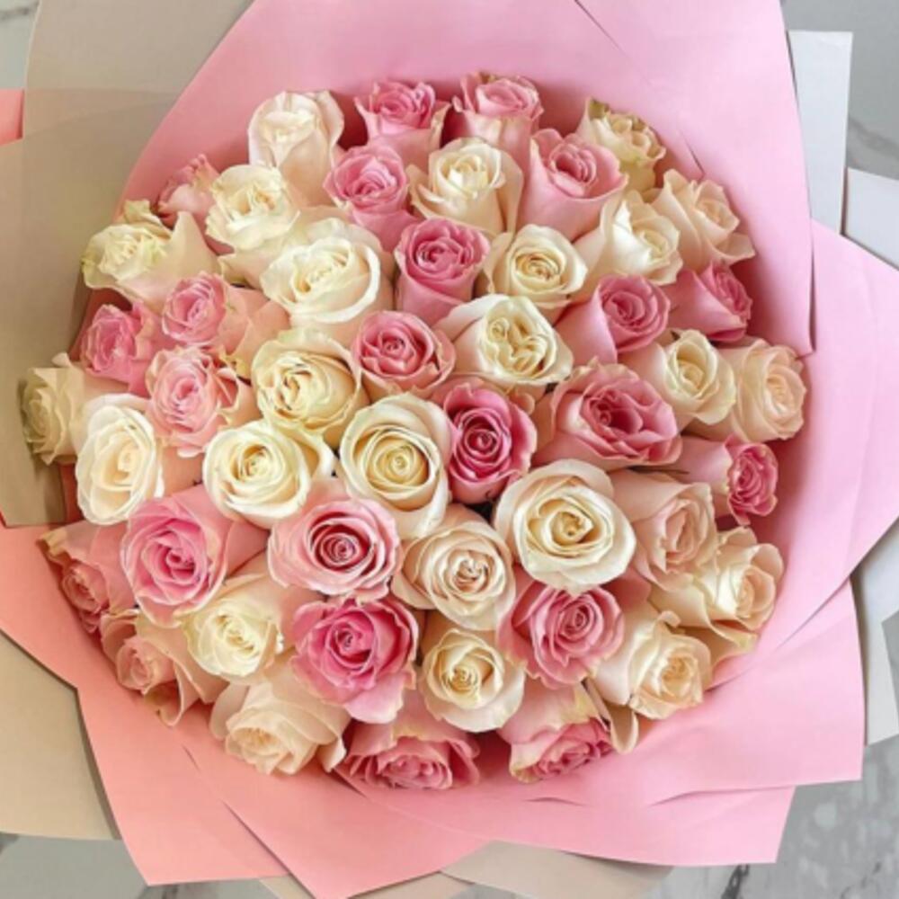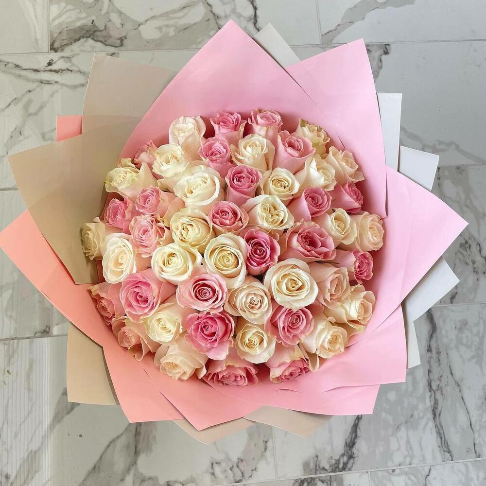Bouquet of 51 white and pink roses