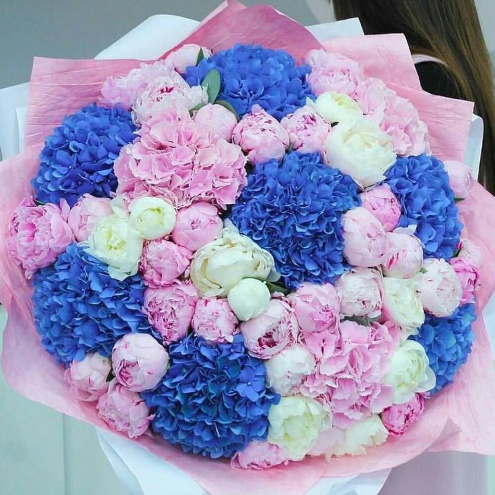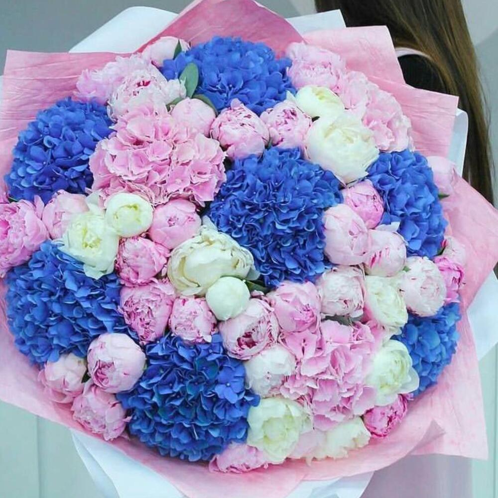 Bouquet of assorted hydrangeas and peonies