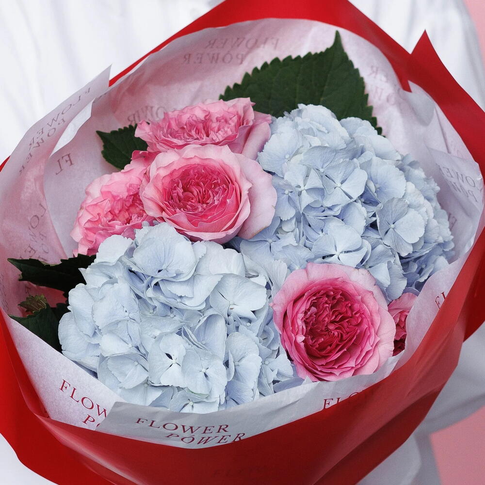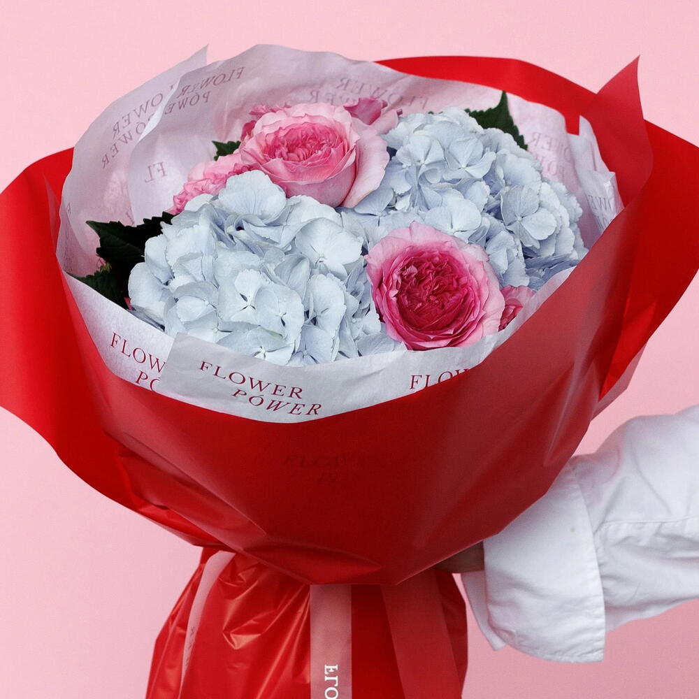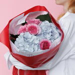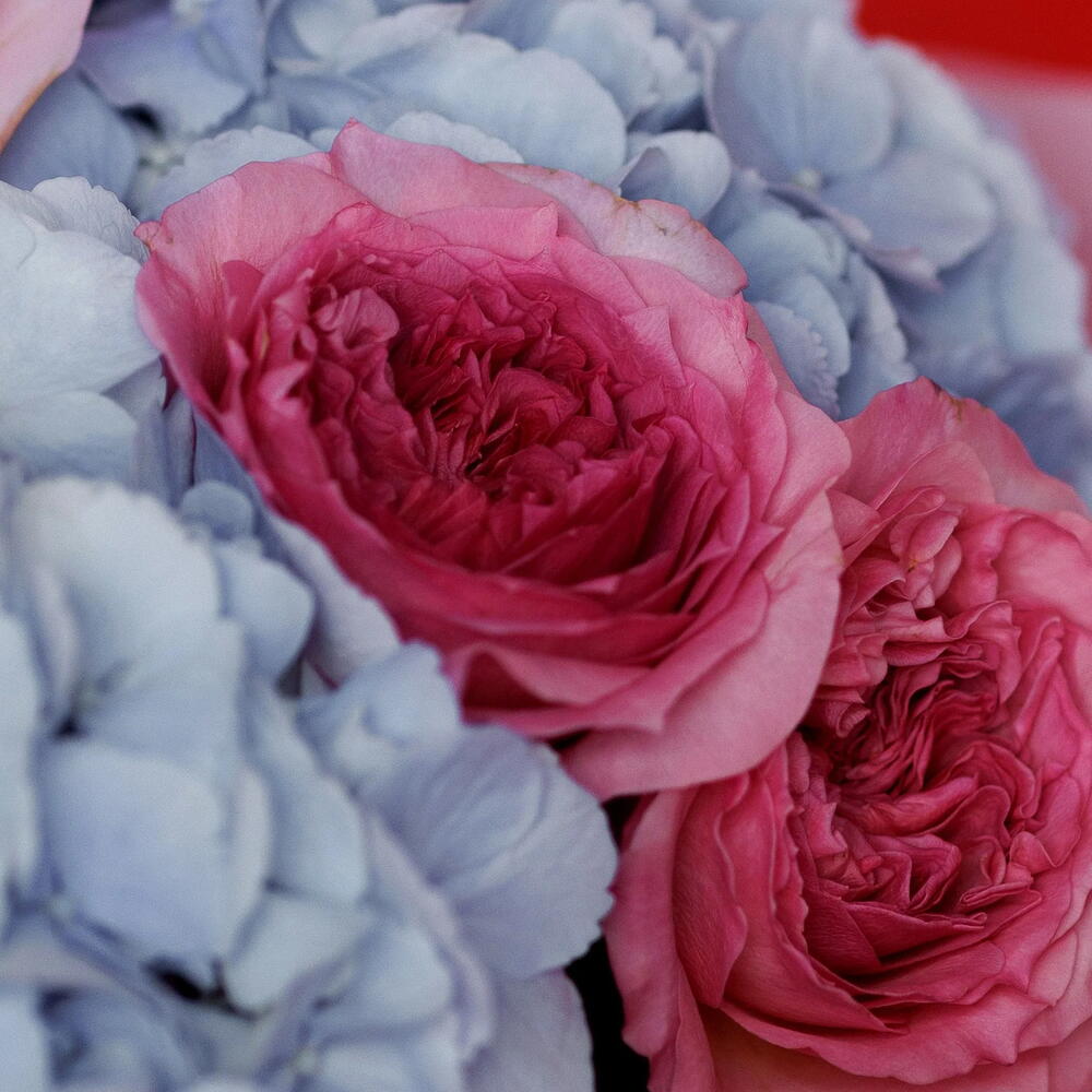 Уникальный и эксклюзивный роскошный букет, сочетающий поразительные контрасты бледно-голубых гортензий и нежных розовых роз. Представленный в драматичной контрастной упаковке, букет «Париж» — изысканный и необычный подарок, созданный для необыкновенного человека, который любит смелое художественное самовыражение.